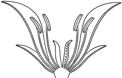 Blüte der bedecksamige Pflanzen im schematischen Länsschnitt |