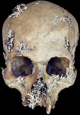 Flechten, die auf Menschenschädeln wuchsen, waren zur Zeit der Signaturenlehre unter dem Namen "muscus cranii humani" als Mittel gegen epileptische Anfälle derart gesucht, daß ihr Gewicht in Gold aufgewogen wurde.